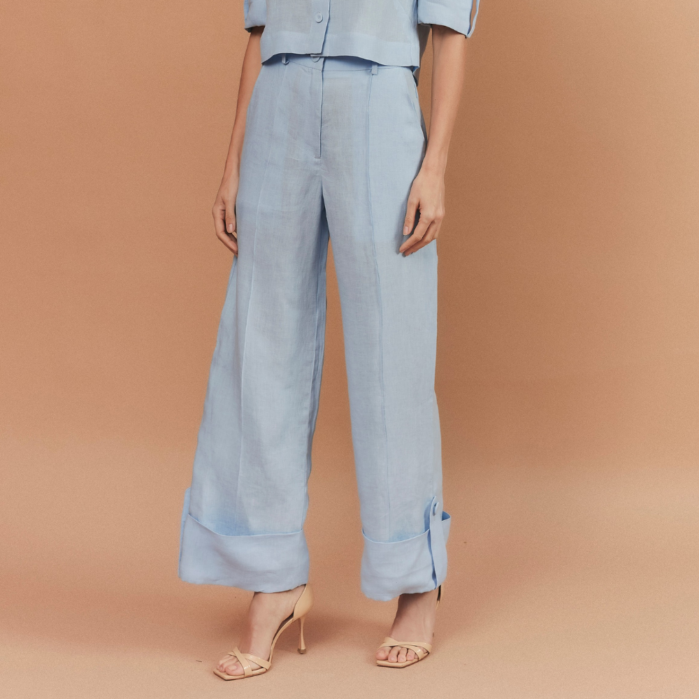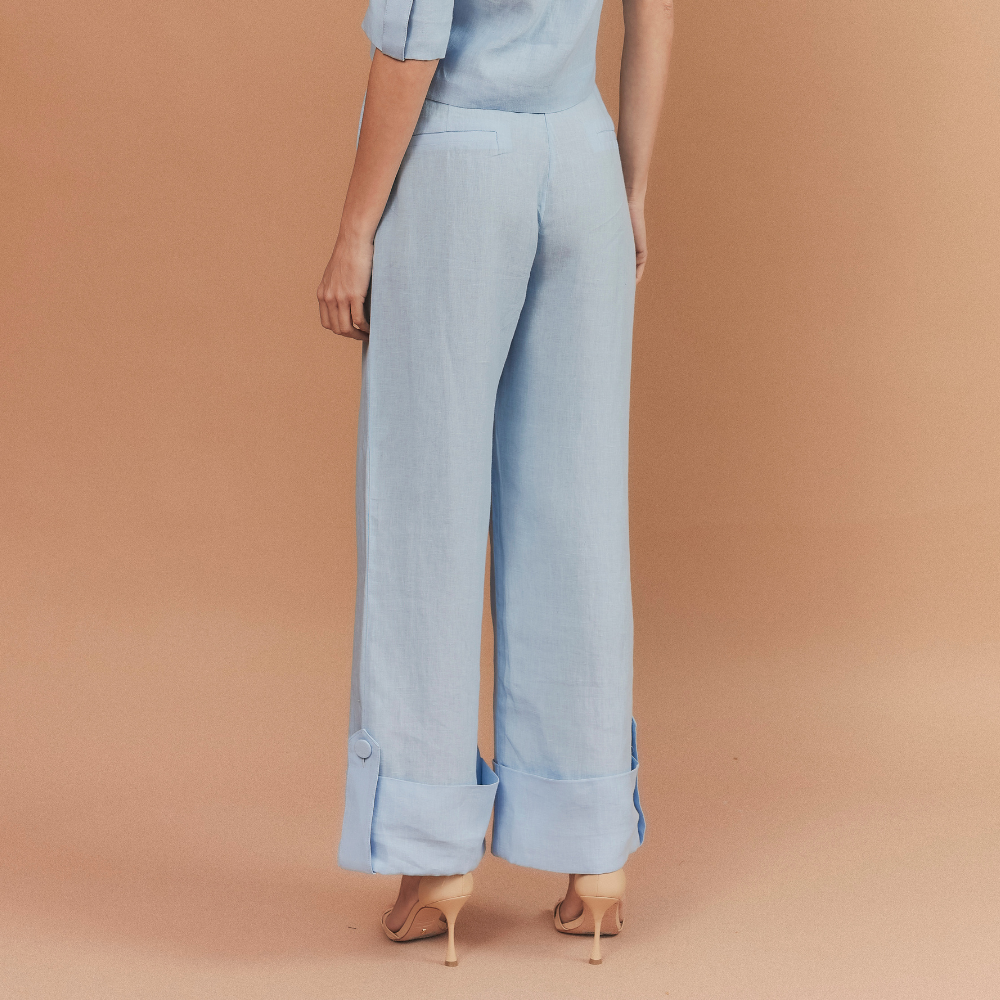 CALÇA CASSIA PURO LINHO AZUL CLARO