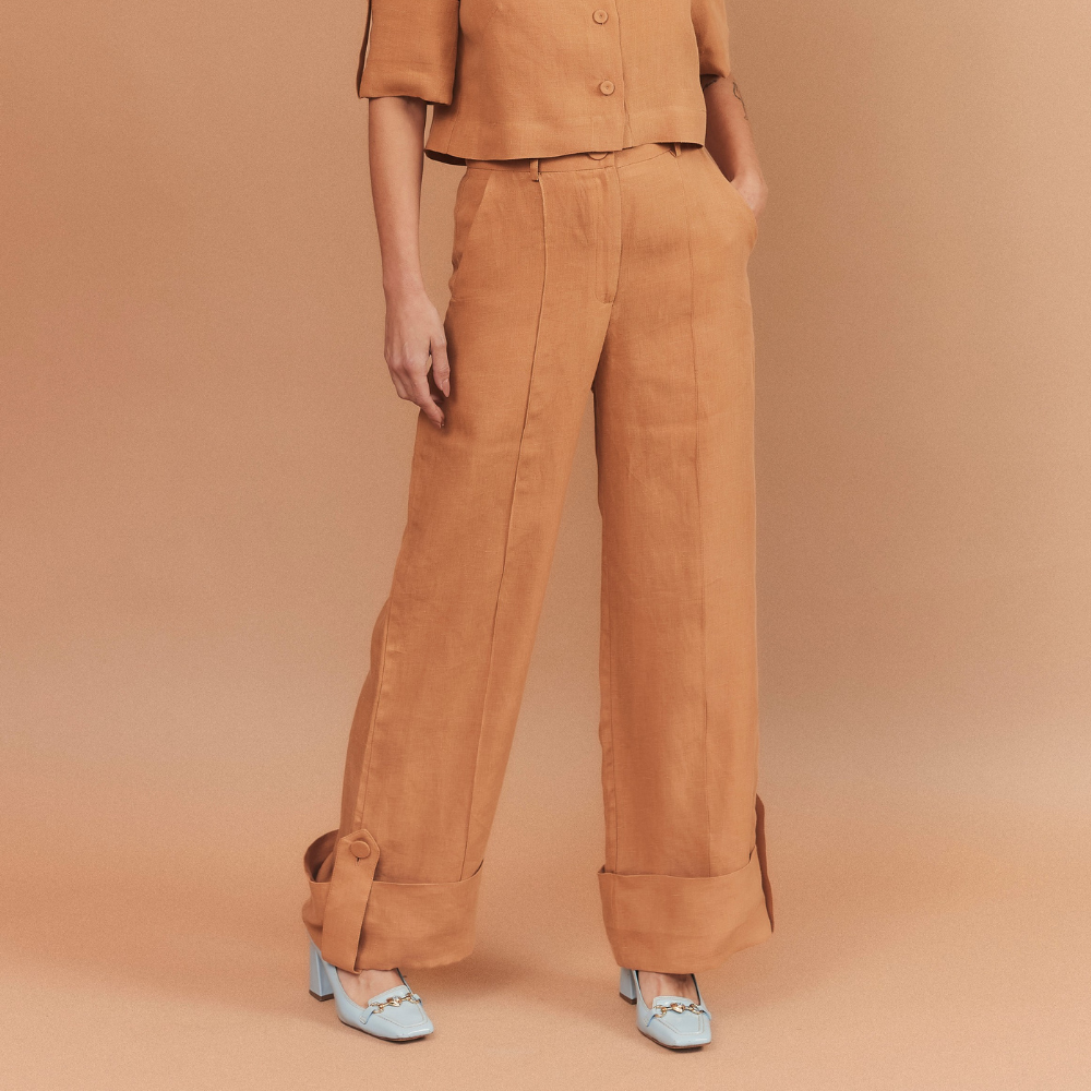 CALÇA CASSIA PURO LINHO CARAMELO