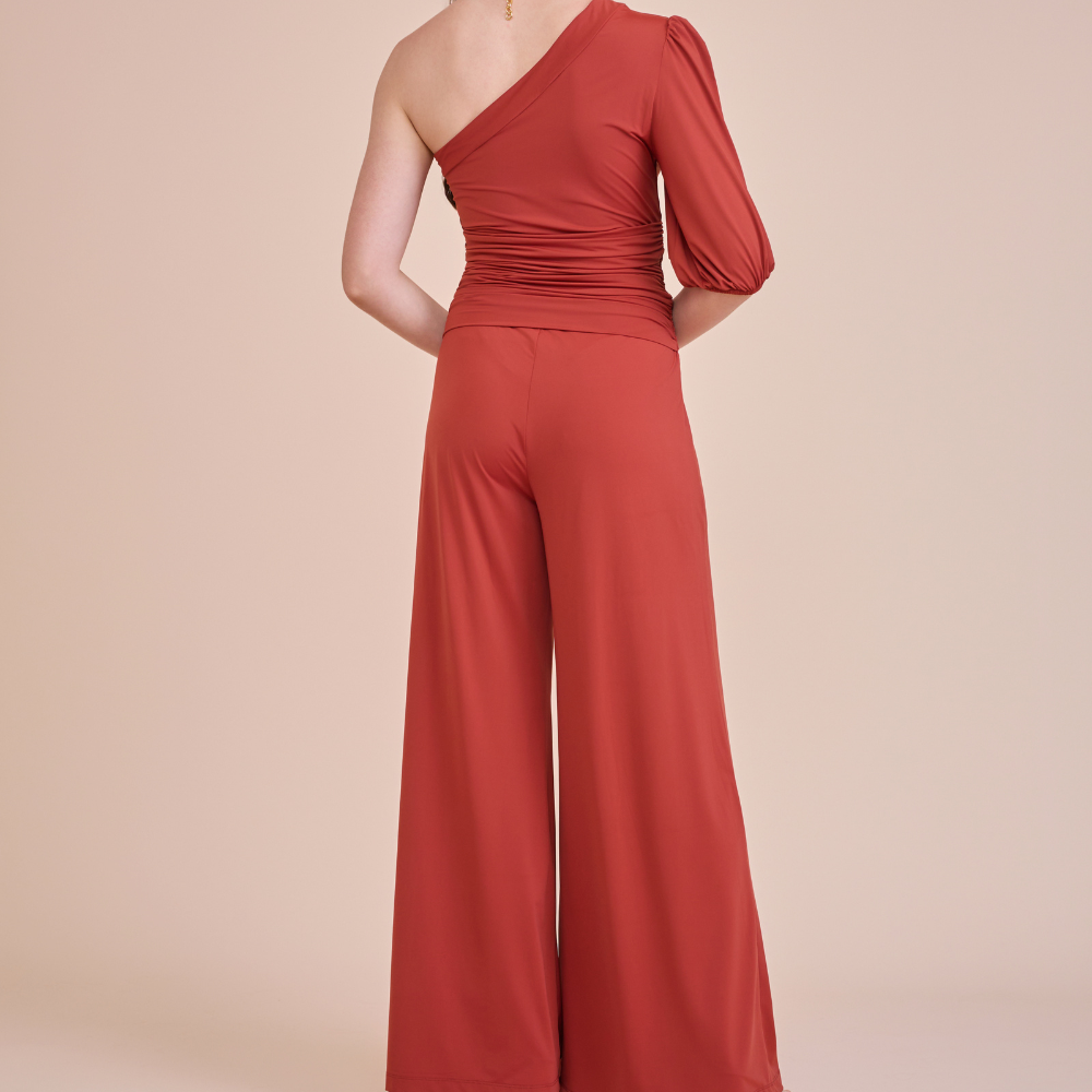 Macacão Edna Um Ombro Pantalona Vermelho Escuro Infinita
